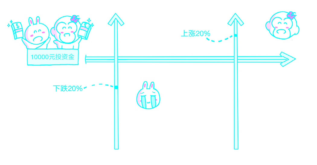 再看看折损了20%的甲。甲想:晕啊!我现在只有8000元了。再有两个月,我就投资一整年了,我要以现在为起点增长25%才可以回本!要想达到巴菲特的水准,就是增长41.25%。而要赶上乙,则需要在两个月内增长50%——这还不算这两个月间乙的股票又增长了的可能性。若是接下来的两个月乙运气好,再涨个5%,那么他就有12600元了,就是说,我的股票要增长57.5%才行……